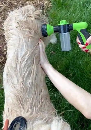 Plus besoin de courir après votre chien ou de vous débattre avec des tuyaux traditionnels : le Pistolet de Lavage rend l'heure du bain simple et agréable. Regardez votre chiot sortir tout frais, remuant joyeusement la queue et prêt à se faire câliner !