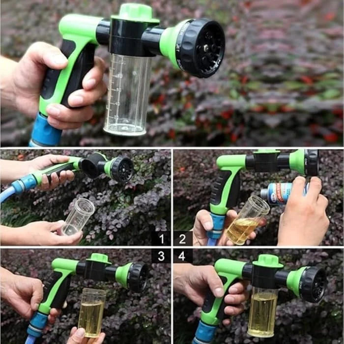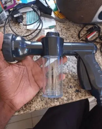 Pressez sur la poignée pour ouvrir/fermer l'eau. Le Pistolet de Lavage crée un mélange de savon efficace lorsqu'il pulvérise, vous permettant ainsi de faire le travail en un clin d'œil.