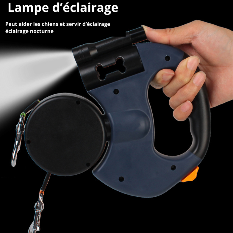 Sécurité même après la tombée de la nuit. Les promenades nocturnes deviennent un vrai plaisir grâce à la lumière LED intégrée. Elle éclaire votre chemin, vous rend visible, et protège vos chiens et vous-même des dangers de l'obscurité.